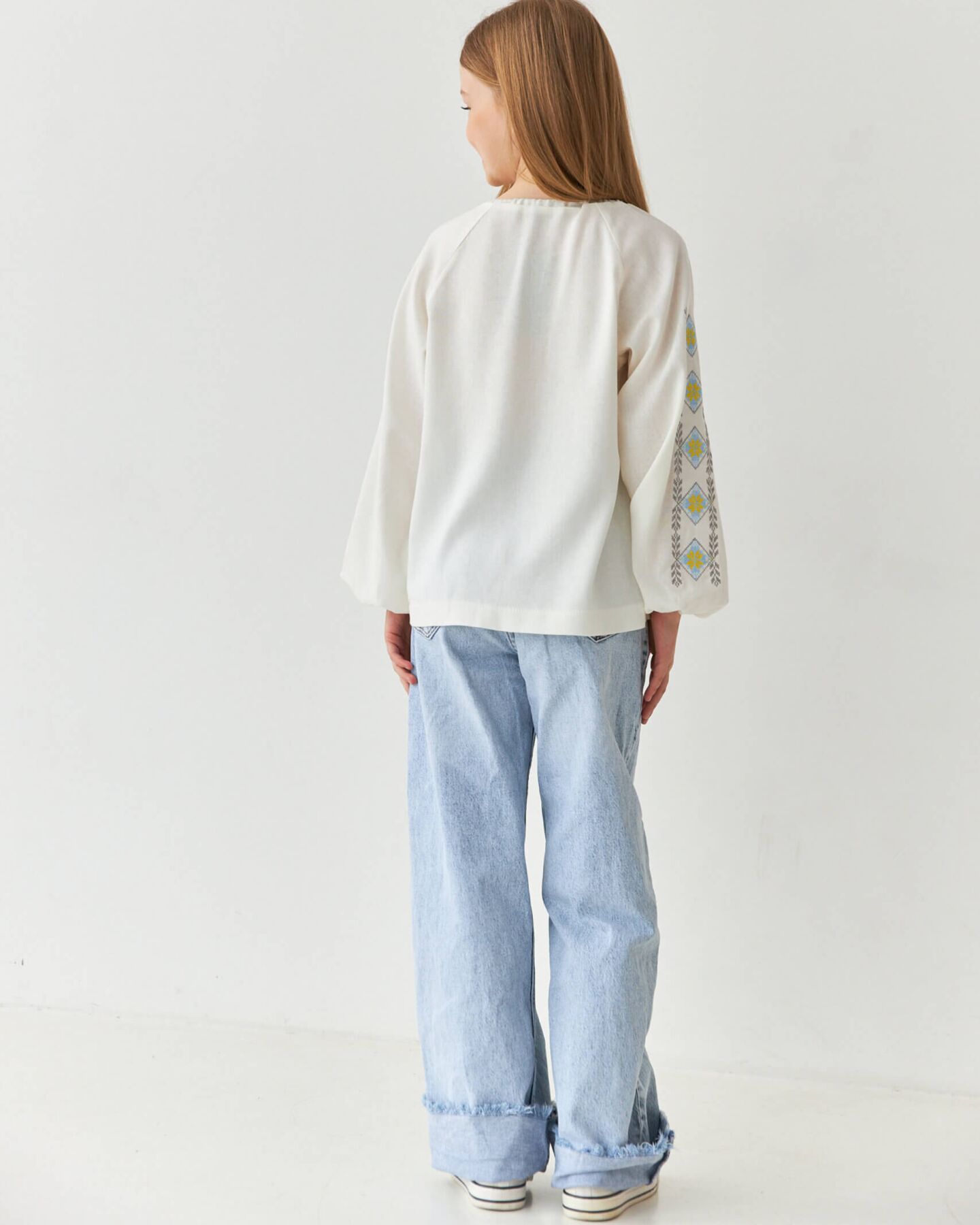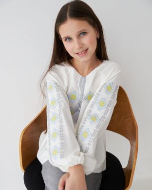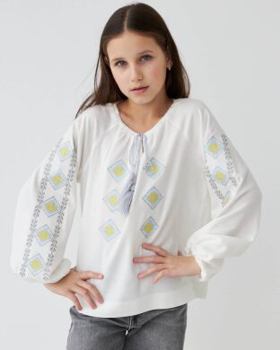 Будній день в школі, свято дня Вишиванки, день Незалежності завжди пройде прекрасно з нашою блузою з вишивкою. Натуральна тканина добре лягає до тіла, м’яка та практична у використанні. Патріотична, красива вишита сорочка пасуватиме зі спідницею, джинсами, брюками-палаццо.