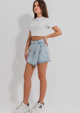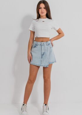 Безліч стильних образів з однією річчю! Спідниця-шорти «Арабель» виконана з щільного джинсу. Спереду має акцентну асиметричну імітацію спідниці. Модель з кишенями та кроєм, який приковує погляди.